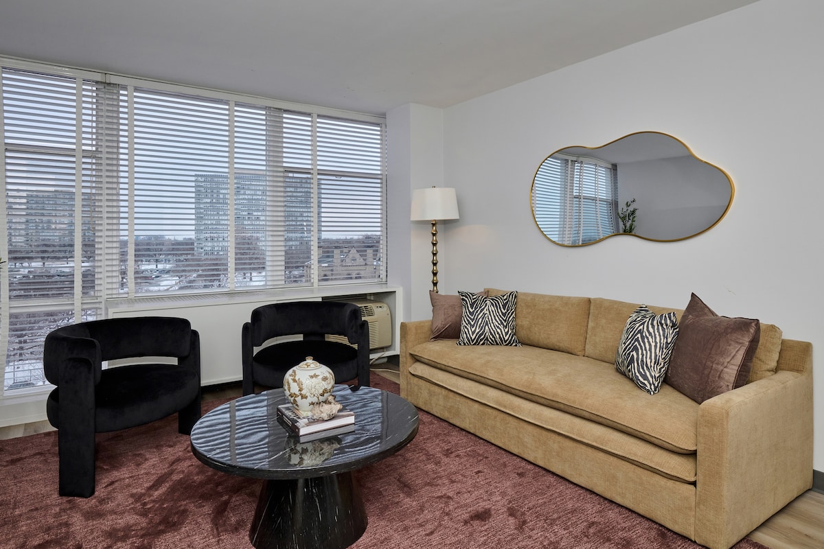 Predivan dvosoban stan na gornjem spratu sa 2 kupatila u srcu Bronzevila! Sa visokim plafonima i tonama prirodnog svjetla. Potpuno opremljena kuhinja ima sve što vam je potrebno za spremanje ukusnog obroka ili možete uživati u jednoj od mnogih odličnih restorana u blizini. 🌊Prošetajte 15 minuta do jezera i plaže Oukvud. Nalazi se u centru grada u blizini: • Centar Čikaga • Soldier Field & Guaranteed Rate Field • Muzej polja i umjetnički institut • Kineska četvrt, Hajd Park i Pilsen • I još mnogo toga!