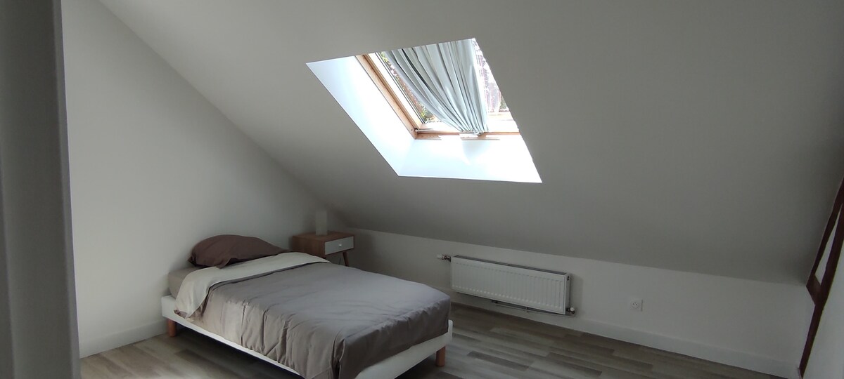📍 Strateško zaustavljanje u Beauvais-Sud (Aux Marais) Studio du Marais, koji se nalazi na 10 minuta vožnje od aerodroma Pariz-Bove (BVA) i centra Bovea, idealna je baza za putnike u tranzitu ili na poslovnim putovanjima. 🛏️ Odmor i efikasnost Sve je osmišljeno da biste se odmorili prije ili poslije leta: vrhunska posteljina marke Simmons (160×200), apsolutni mir na rubu grada i brzi Wi-Fi za one koji rade. Idealno za vaš međupresjed u Beauvaisu.