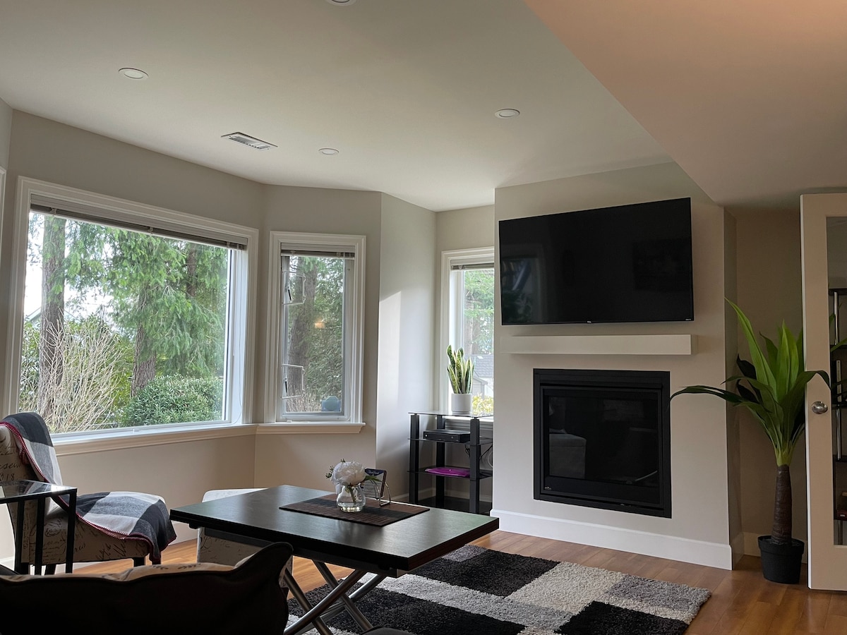 Biće vam teško da pronađete lepši apartman sa 1 spavaćom sobom (King). Ova jedinica od 970 kvadratnih stopa pruža sav prostor koji vam je potreban za miran i udoban boravak. Smješten na samom vrhu male planine, možete da vidite sve do Vankuvera po vedrom danu! Postoji parking na prilazu za 1 vozilo. Apartman je veoma svetao sa puno prirodnog svetla. Imate i privatno zadnje dvorište koje uključuje roštilj na plin i spoljnu trpezariju. Sve u vezi sa ovim smeštajem govori „udobnost“!
