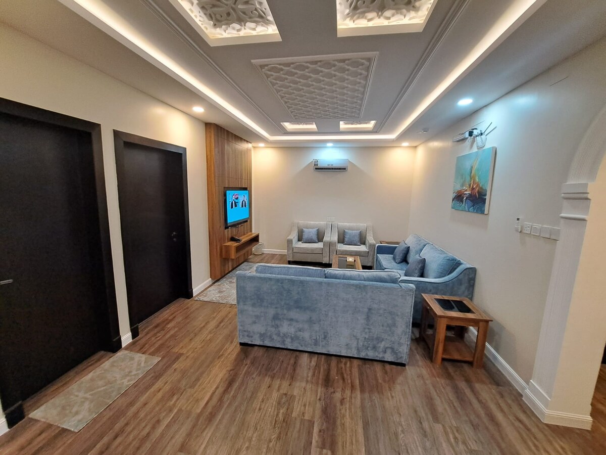 Stan sa privatnim ulazom, mirna lokacija i daleko od buke. Udaljen je 3 minuta od komercijalne ulice automobilom, tako da ćete pronaći sve usluge iz restorana, supermarketa i vešeraja. Stan se nalazi u četvrti Budaja iza tržnog centra Al-Rashed (udaljen samo 5 minuta automobilom) sa jednostavnim pristupom centru Abha oko 10 minuta od ( Abu Khayal, High City i Al-Souda Road). Ima svu udobnost. Stan ima 2 spavaće sobe, salon, kuhinju, 2 toaleta