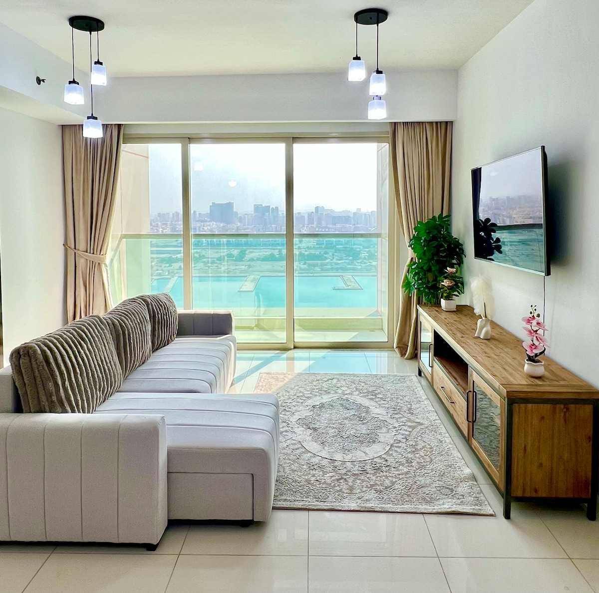 Probudite se uz zvuk talasa u ovom stanu na 8. spratu uz plažu! Sa 2 spavaće sobe, 3 kreveta i 2 kupatila, udobno prima do 4 gosta. Uživajte u prekrasnom pogledu na more, modernom enterijeru i punom pristupu sadržajima zgrade — bazenu, teretani i prostoru za igru za djecu. Samo nekoliko koraka od pijeska i nekoliko minuta od tržnog centra Reem, Korniša i glavnih atrakcija Abu Dabija, to je vrhunski odmor u primorskom gradu.