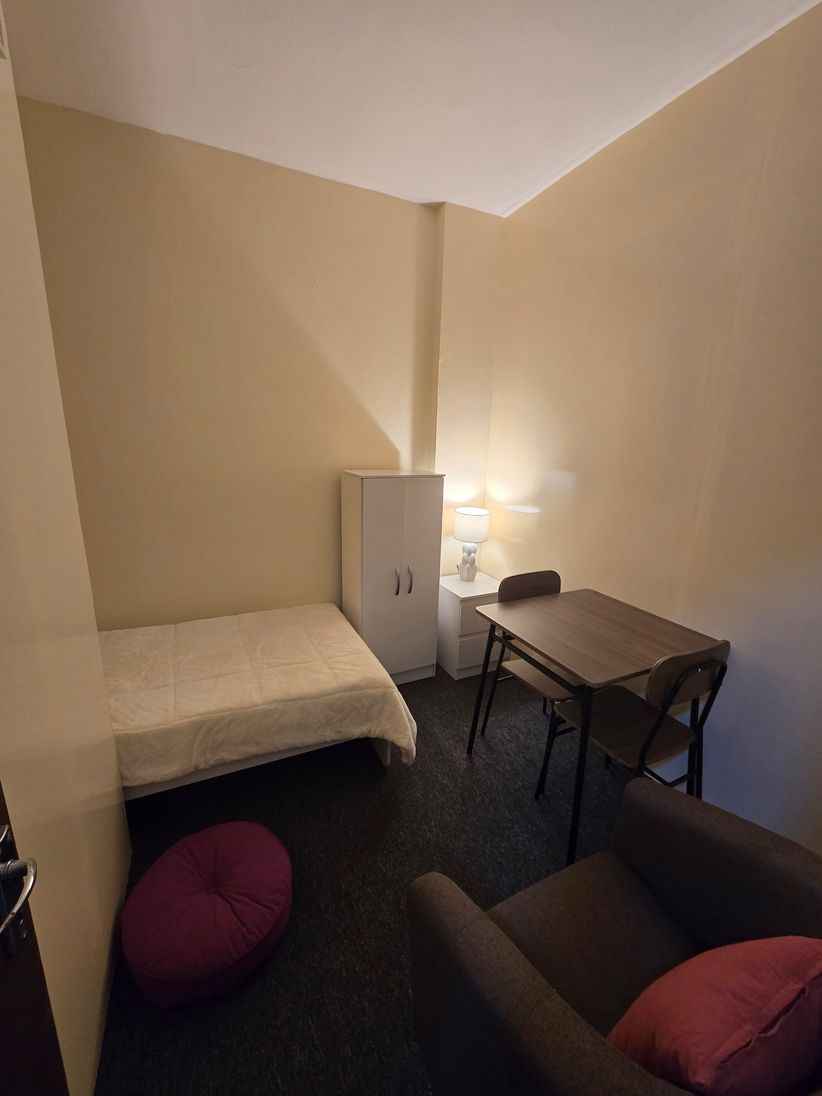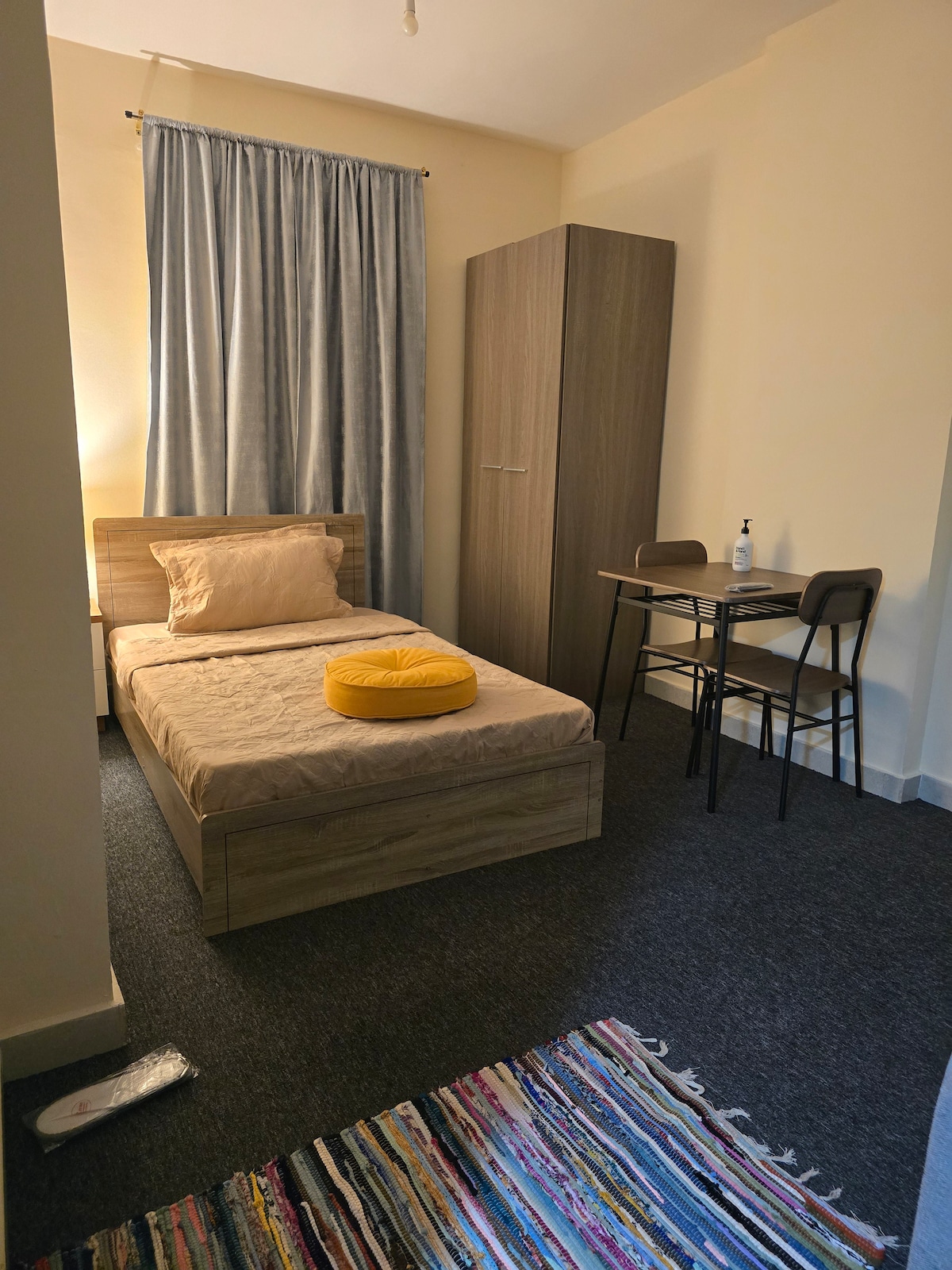 Welcome to your cutest and coziest private room in Abu Dhabi — perfect for travelers, workers, and anyone looking for a quiet place to relax and enjoy a great sleep. This comfortable carpeted room comes with everything you need for a peaceful stay, including a dining table inside the room, soft lighting, and a clean, relaxing atmosphere. You’ll also have free access to a shared very clean kitchen and toilet, plus the convenience of cooking, washing, and preparing meals during your stay.