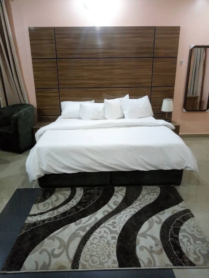 Available FREE Airport pickup Daily Breakfast bottles of water (2 daily) Wi-Fi Expansive Living Room MASTER Bedroom (ensuite) GUEST Bedroom(s) [ensuite] SMART TV + dedicated DSTV DECODER FULLY furnished Kitchen/Kitchenette Guest Toilet(s) SERENE environment 24Hrs Room Service Laundry Service Power Supply [With 3 Standby Generators] Maintenance Doctor’s service (on call) Fine dining restaurant that serves both Continental & Nigerian dishes. Shisha service SPA Meeting rooms
