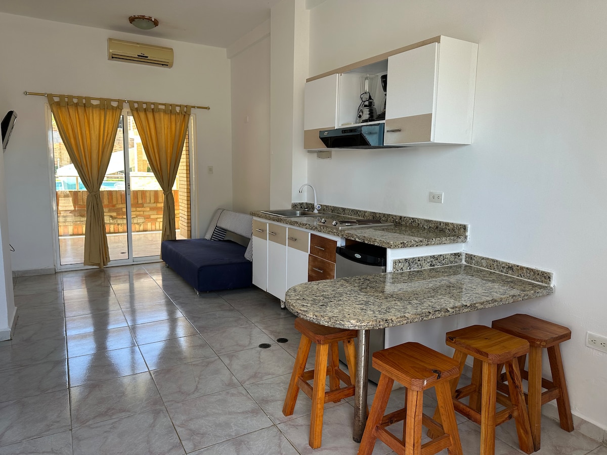 🏝️CONDOMINIO FLAMINGO BAY II🏖️ Opustite se sa cijelom porodicom na ovom mjestu gdje je mir prozračan. Kondominijum se računa: Parrilleras. Bazen. Tobogan. Tenis, košarka i fudbalska kača. Odjeljenje broji: Wi-Fi velike brzine i UPS. 2 klimatizovana. 1 bračni krevet. 1 triliter. pametni TV. led TV sa rodokuom. Frižider, mikrotalasna pećnica, Licuadora ytostiarepas. Alat za kuvanje, šerpe, tanjiri i anime kava. Nosite krpe i čaršave. Narukvica se plaća 5 $ po osobi.
