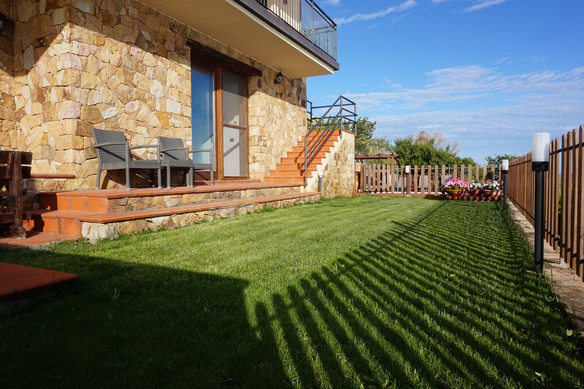 Privatna vila s bazenom i sicilijanskim šarmom U srcu autentičnog sicilijanskog sela, ova vila nudi bazen sa hidromasažom, solarijumom, baštenskim barom, opremljenim prostorima za opuštanje, kućnom teretanom i teleskopom. Besplatan brzi Wi-Fi, lična prijava non-stop kako bi vas dočekao sa tipičnom toplinom sicilijanskog gostoprimstva, privatnim parkingom i 2 vesla na zahtjev. Briga o detaljima i sicilijansko gostoprimstvo za romantičan odmor, porodični boravak ili trenutak čistog opuštanja s prijateljima.