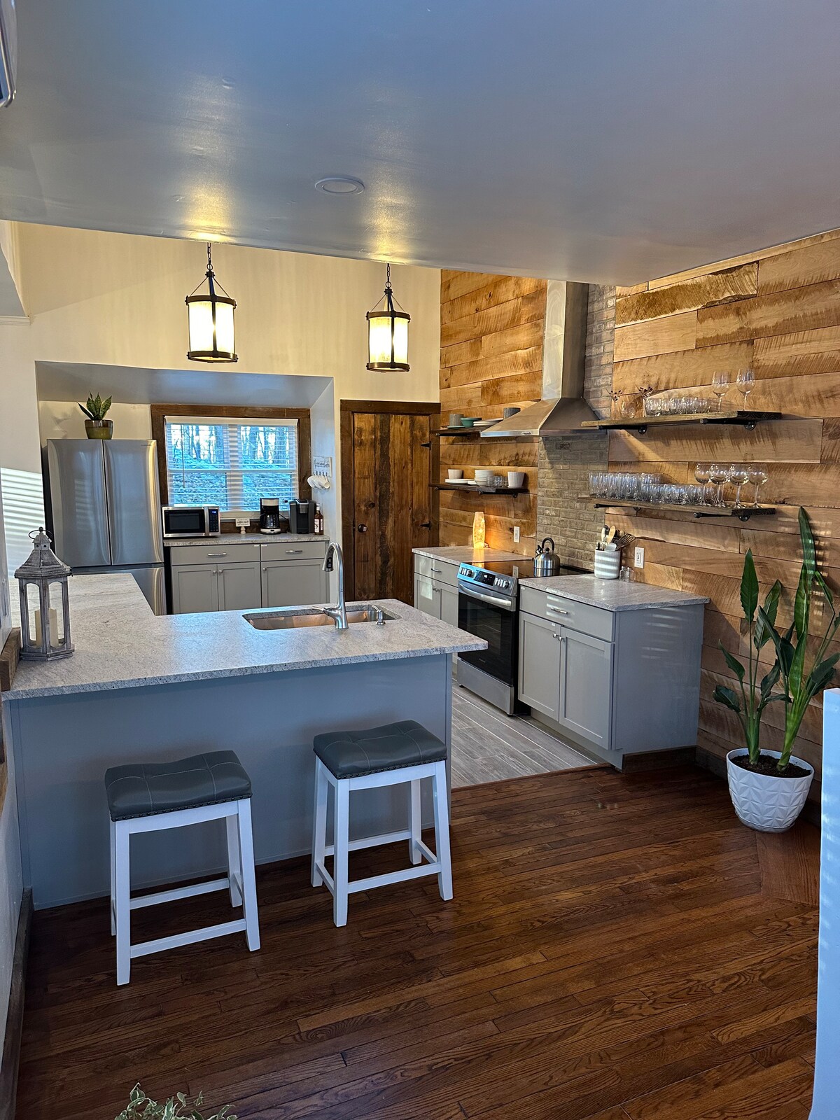 Vrhunski luksuzni smještaj. Rustikalan i savremeni dragulj sa drvenim plafonima i kamenim kaminom. Staja i vanjski prostor za događaje. Prekrasna otvorena kuhinja dizajnirana kao evropski bistro sa vrhunskim uređajima. Vanjska terasa i Firepit za zabavu ili opuštanje. Prostrano, mod, udobno i romantično sve u jednom! Velika velika soba za okupljanje. 42 prelijepa hektara sa šumom, potokom i mnogo divljih životinja. Savršeno za lutanje pasa.