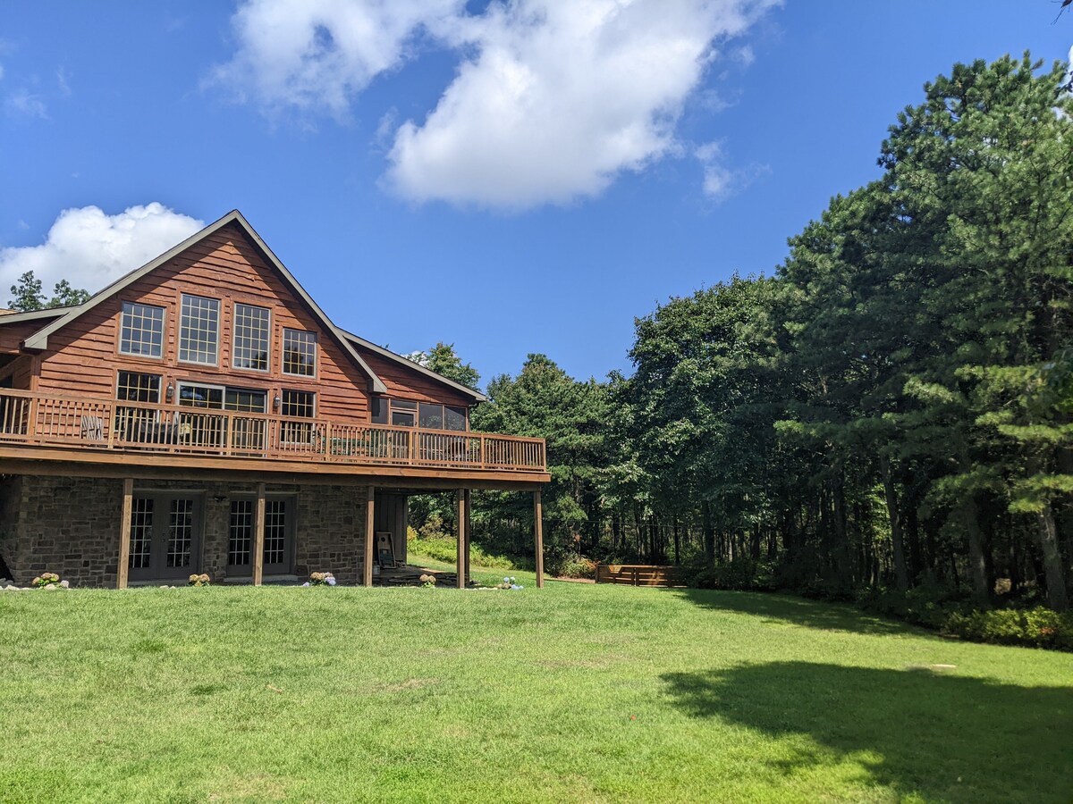 Luksuzna drvena kuća u prostranom prirodnom okruženju. Izuzetno čist. Potpuno pripremljen sa posteljinom i peškirima. Mjesto „samo ponesite četkicu za zube”. 5 kilometara od sredine puta Appalachian Trail. U blizini Državne šume Majko. Državni park Pajn Grouv Peč (udaljen 3 milje). Plaža i prostor za kupanje. Internet i Wi-Fi. Nema zabava! Nema događaja! Samo za registrovane goste. Skenirajte kôd (druga fotografija) mobilnim telefonom za impresivni 3D obilazak objekta. NAPOMENA: da biste mogli da iznajmite smještaj, morate imati najmanje 25 godina.