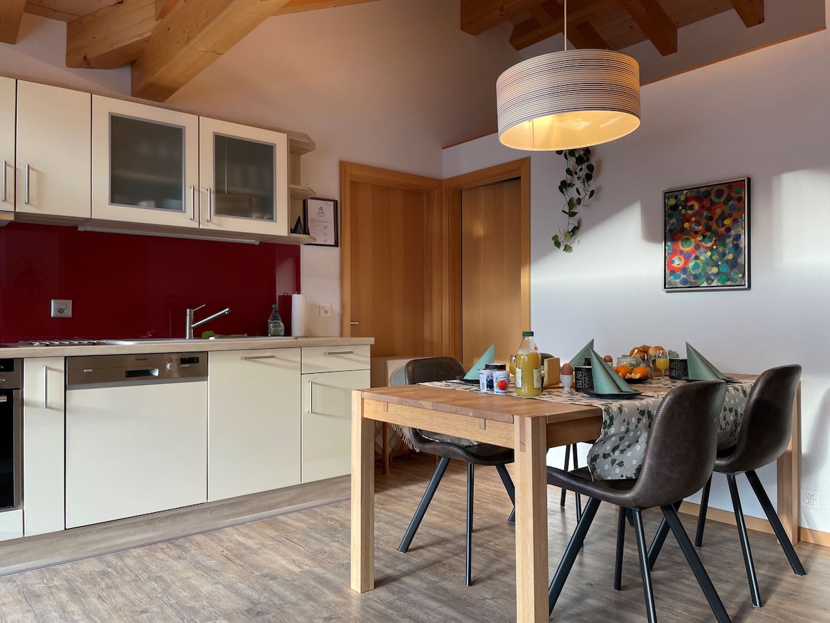 Centralni, tihi i udobni planinski stan u potkrovlju nalazi se iznad sela. Odatle možete lako prošetati do prodavnica, seoske željeznice i Čentenbahna. Neometana lokacija vam omogućava da uživate u pogledu na planine iz svih spavaćih soba i balkona. U lošim vremenskim danima, dnevna soba vas poziva da se opustite. Zabavu pruža jednostavno namješten kućni bioskop.