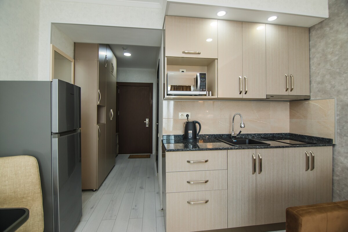 Potpuno novi apartmanski hotel na novom bulevaru Batumi . Sa velikog balkona se pruža predivan pogled na more, grad i planine. Soba ima potpuno novo renoviranje, takođe opremljenu najnovijim tehnologijama za udobnost i bezbjednost. Prva linija! U blizini hotela nalaze se: pevajuće fontane i vodeni park, arganovo jezero i kafići, brojne zabave za odrasle i decu. Ovde želite da se vratite. Povezivanje sa ethernet vlaknima.