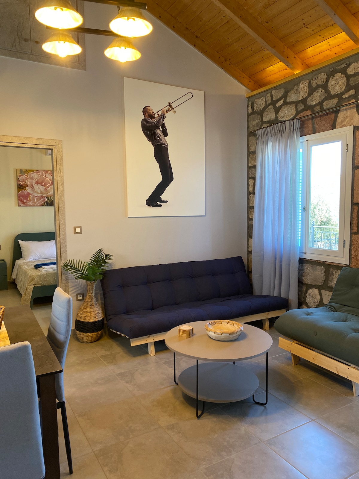 Zasnovana na malom ostrvu Kalamos, izgrađenom od kamena sa drvenim podovima, kuća je svijetla i ima nevjerovatan pogled na Jonsko more. Ima dvije odvojene sobe na gornjem spratu, dok su kuhinja i kupatilo u prizemlju. Kuhinja je prostrana i u njoj se nalazi dodatni krevet. Internet je brz i pouzdan (Starlink). Svježa voda se obezbjeđuje tokom cijele godine iz prirodnog izvora u planini. Kuća je okružena maslinama i savršena je za parove i porodice.