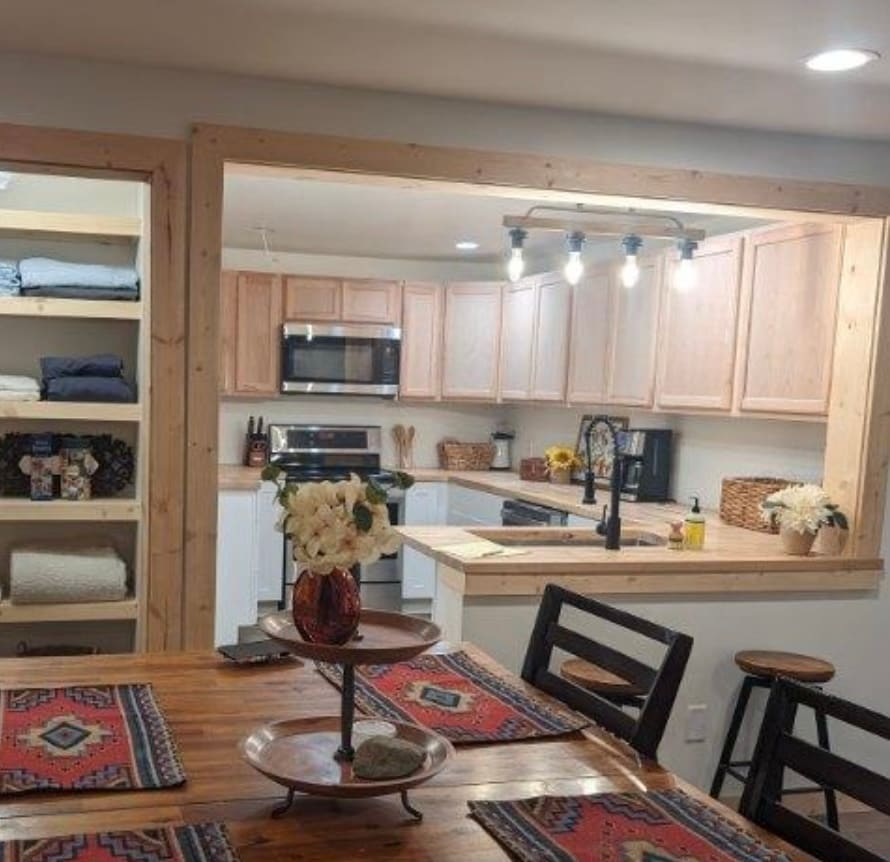 Lokacija, lokacija, lokacija. Ušuškan uz planine i na korak od Nacionalne šume Bridž i reke Grejs, ova trosobna dvosobna brvnara sa dva kupatila omogućava vam da izaberete svoju avanturu. Ovo porodično utočište je kratka vožnja od 36 milja do kanjona Džekson Hola do Džekson Hola. Alternativno, možete da bacite red u bilo kojoj od tri obližnje reke, pešačite, vozite stazama, brodom u rezervoaru ili da idete na rafting i vožnju kajakom . Za svakoga ponešto!