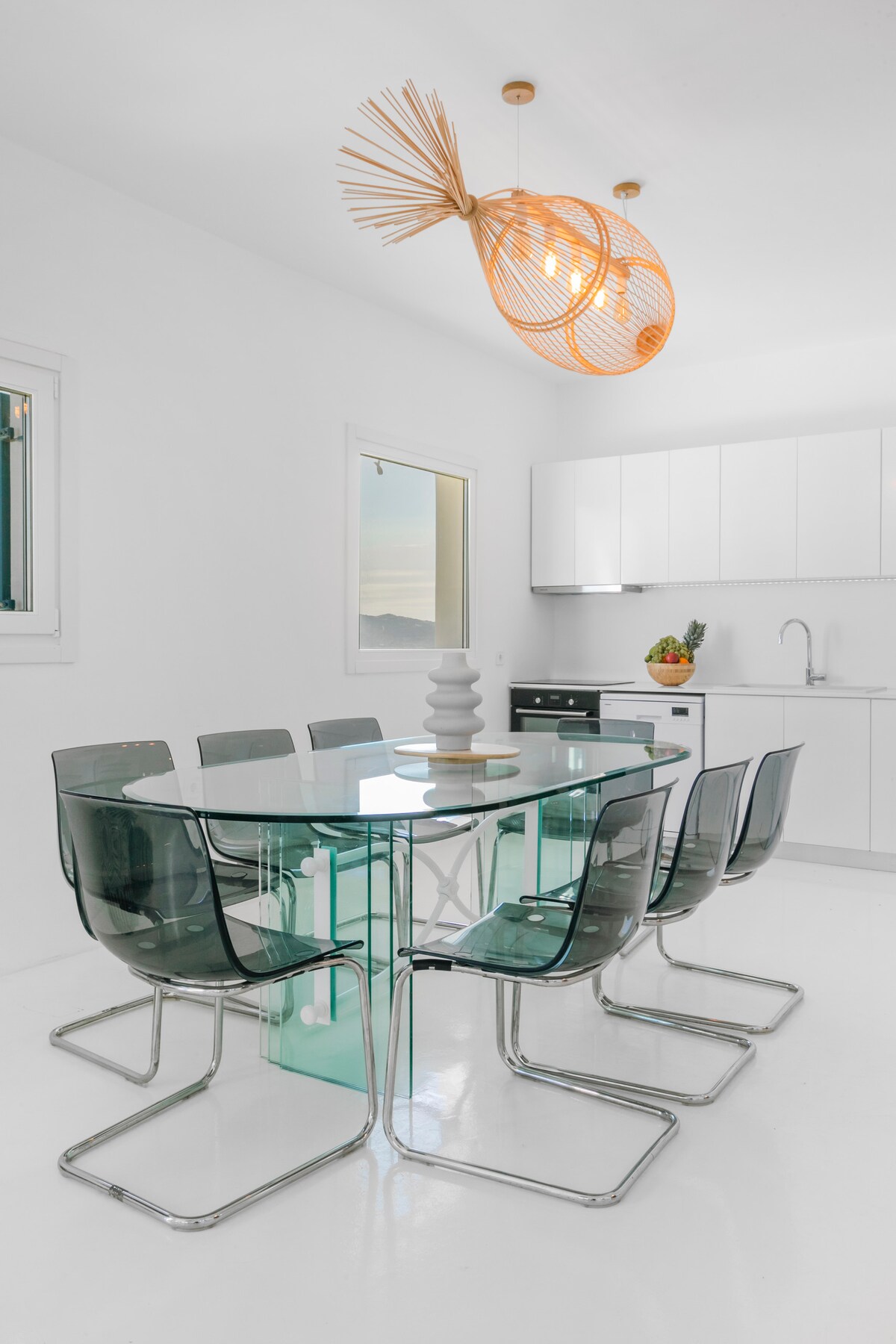Vila je izgrađena na najpovlašćenijem položaju i nudi potpuni mir u kombinaciji sa pogledom koji oduzima dah i najboljim zalascima sunca na ostrvu. Vila se sastoji od izuzetnog luksuza, izgrađenog sa svim sadržajima koji život čine bogatijim, opuštajućim i ugodnijim. Vila se nalazi u oblasti Agios Ioannis-Ornos-Pouli koja je jedno od najistaknutijih područja ostrva sa neprekidnim pogledom na Egejsko more i ostrva Paros, Naksos, Delos, Siros, Tinos sa beskonačnim bazenom.