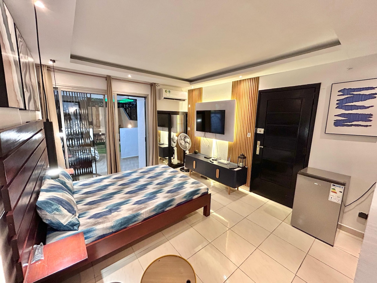 U srcu visoravni,stan stajanja, opremljen i opremljen, potpuno klimatizovan, generator ,Wi-Fi internet i obezbeđen danonoćno, 1 nezavisna soba, vrhunski pogled na lagunu,u srcu poslovnog kvarta (banke,supermarketi, restorani, barovi, klinika, džamija,crkva) 200 m od hotela PULLMAN Usluga čišćenja je uključena,