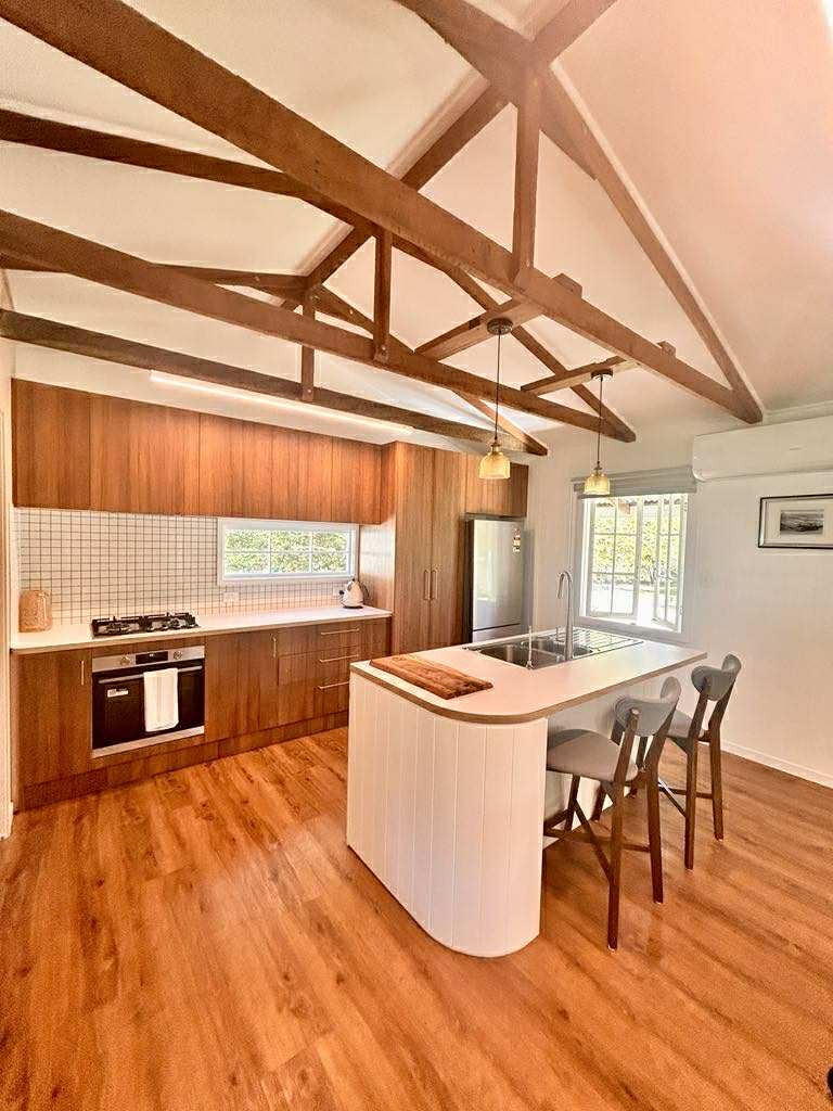 Ovo je vaše potpuno resetovanje. Rustikalna kuća s kosim krovom smještena u ruralnom području Kvinslenda – livade, eukaliptusi, prostrano nebo – dovoljno daleko od svega da se zaista osjećate kao da ste daleko od kuće, a dovoljno blizu Agnes Votera i južnog Velikog koralnog grebena ako vam zatreba razlog da odete (vjerovatno nećete htjeti). Prepustite se uživanju u kadi sa nožicama u obliku kandži. Kuvajte napolju. Zaspite u tišini. Povedite psa. Formula je jednostavna. Uspijeva svaki put.