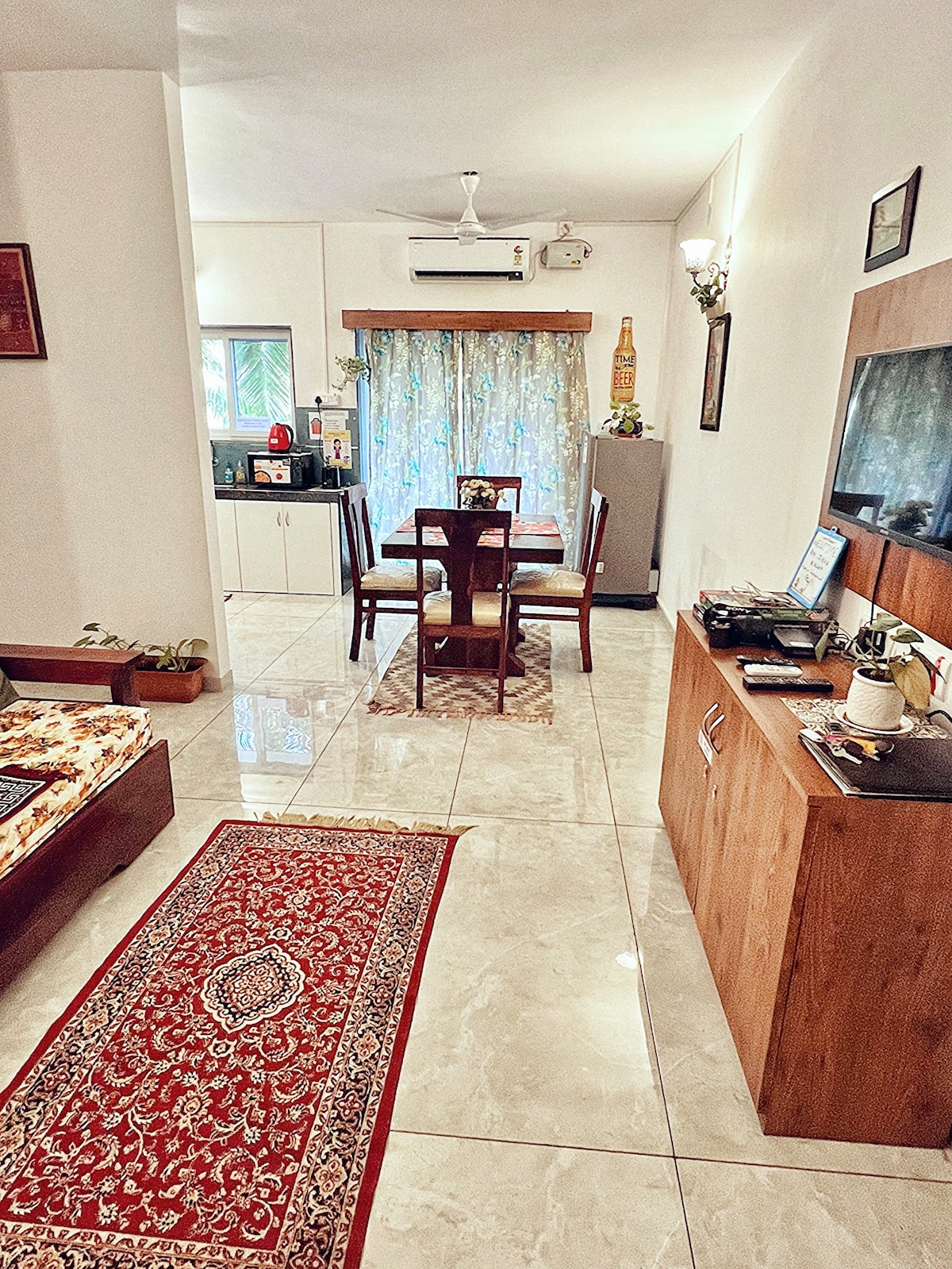 Opustite se u ovom prostranom i mirnom prostoru koji je estetski dizajniran imajući na umu svu atmosferu plaže. Smješten u mirnoj stazi okruženoj zelenilom i nasuprot hotelu s 5 zvjezdica. Stan je kratka vožnja od 5 minuta do jedne od najboljih plaža u SouthGoi. Opremljen svim uređajima i potpuno funkcionalnom kuhinjom, možete lako da promiješate obrok. Stan takođe ima rezervni slučaj nestanka struje kako se vaš WFH ne bi poremetio. Opremljen brzom Wi-Fi vezom od 150 MBPS za vašu WFH potrebu