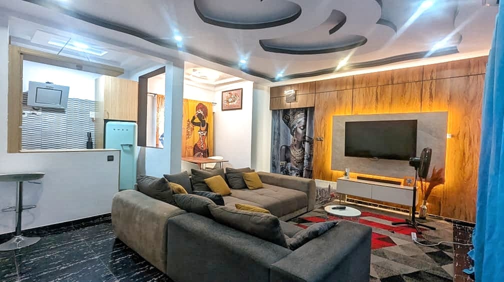 Uživajte u ovom elegantnom i modernom smještaju. U srcu Lomea, nedaleko od pijace ASSIYEYE, na pet minuta od petlje Agoe i Filo Parc. - Sve sobe su klimatizovane, - Kuhinja ima sve moderne sadržaje, - Dnevni boravak je opremljen pametnim TV-om i hifi sistemom koji će vam uljepšati trenutke opuštanja, - Wi-Fi je uključen u ponudu. - Konsijerž je prisutan non-stop ako je potrebno. - Sedmično čišćenje na vaš zahtjev je uključeno