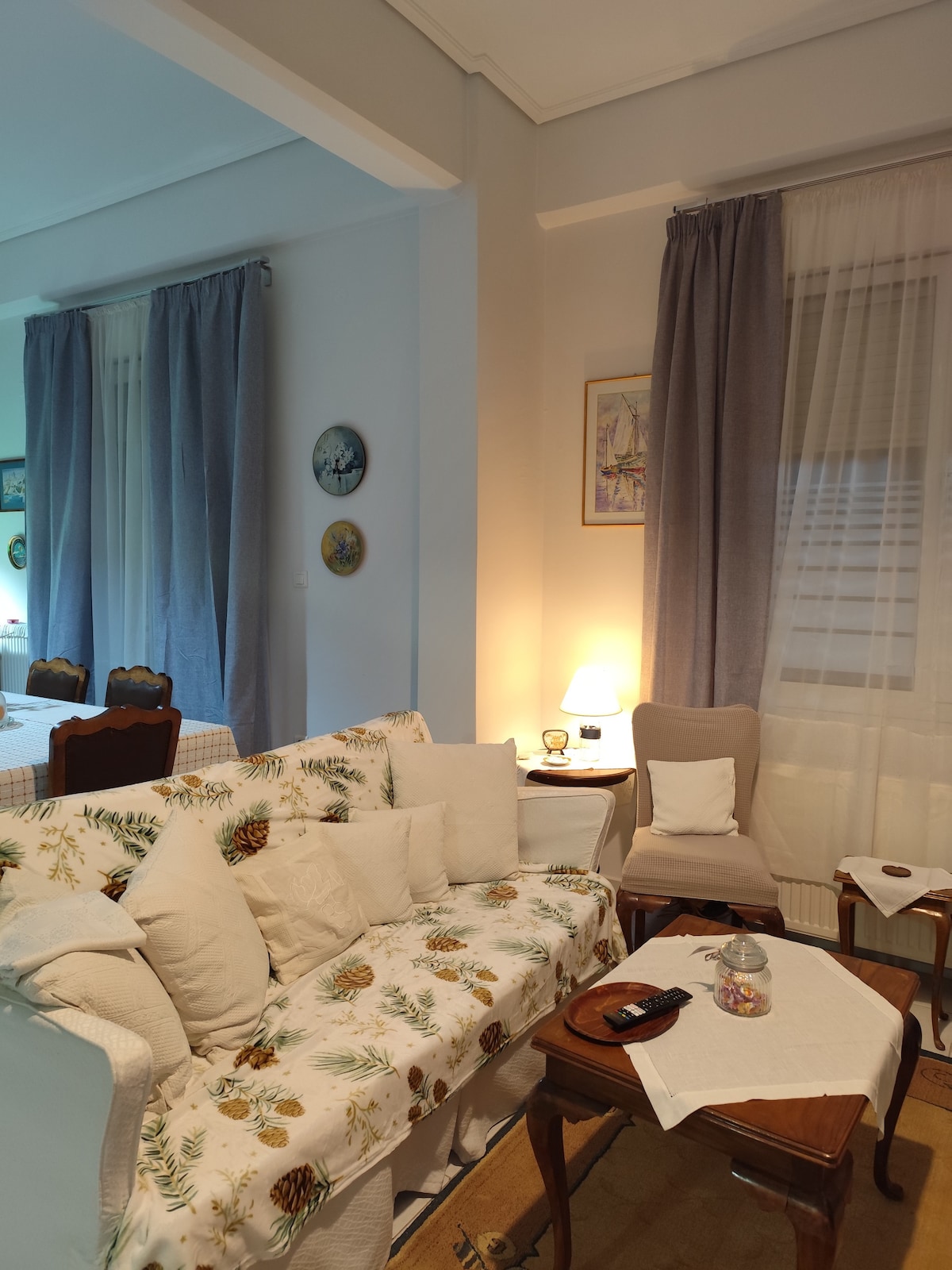 Nezavisni potpuno renoviran stan na 5. spratu u centru Agrinio. Ima 1 spavaću sobu s velikim bračnim krevetom, 1 spavaću sobu s 2 kreveta i 1 sofom. Veliko kupatilo i velika kuhinja. Ima veliku verandu sa panoramskim pogledom.