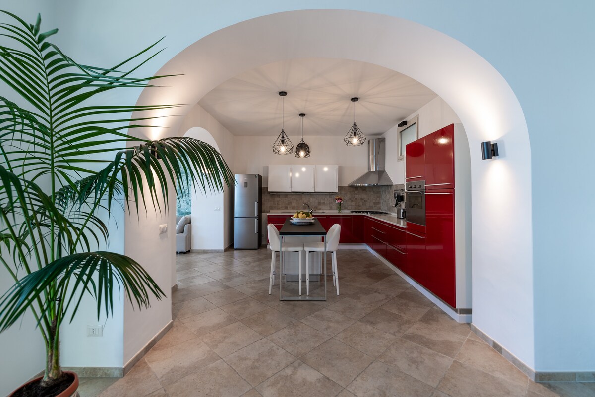 Osvijetljen i gostoljubiv, stan se nalazi na prvom i posljednjem spratu nedavno renovirane porodične rezidencije. Unutrašnjost, namještena u elegantnom mediteranskom stilu, nudi toplu i autentičnu atmosferu, savršenu da se osjećate kao kod kuće. Vrhunac kuće je velika bašta na krovu, idealna za opuštanje na otvorenom i uživanje u prelijepom pogledu na planine i Vezuv.