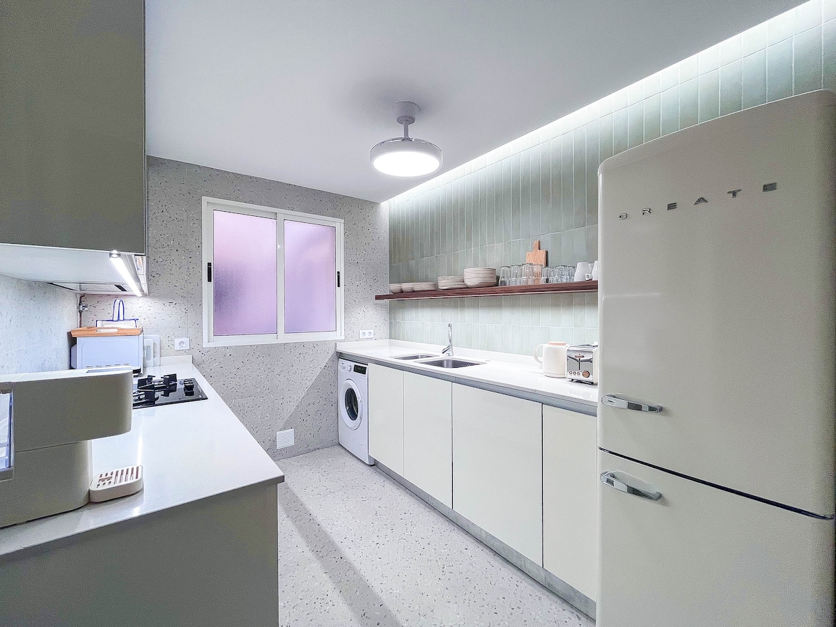 Centralni stan pored šetnice, istočne plaže i užitaka. Pješački pristup svim uslugama restorana i supermarketa. Idealno za porodice sa malom decom ili grupe prijatelja da se odmore,uživaju u plažama i raznim restoranima na plaži ili u centru. Uključena je privatna garaža. Smart TV sa Disney +. Nema klima-uređaj ni centralno grejanje. KUĆNI LJUBIMCI NISU DOZVOLJENI.