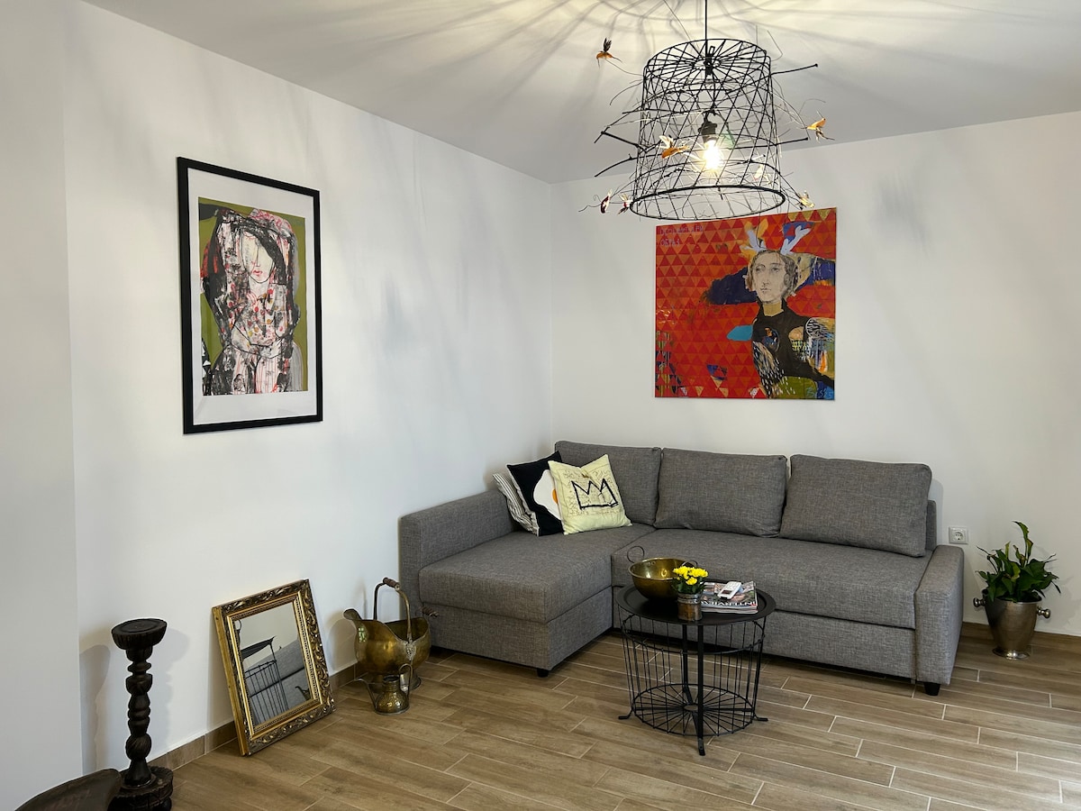 Uživajte u elegantnom doživljaju u ovom stanu koji se nalazi u centru grada. Mnogo restorana, prodavnica i kafića u roku od nekoliko minuta hoda. • 10 minuta hoda do plaže • Potpuno opremljena kuhinja-studio • Kauč na razvlačenje + udobna dvokrevetna soba • Vrhunski sadržaji: aparat za kafu, posteljina, peškiri, fen za kosu, pegla • Parking na licu mesta Pušenje NIJE DOZVOLJENO