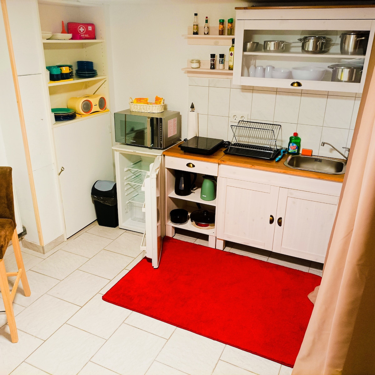Mali novouređeni podrumski stan od 40 m2 sa sopstvenim ulazom, okružen zelenilom:-) Stan vam nudi spavaću sobu sa TV-om i prostorom za rad, udobnu kuhinju-dnevni boravak i tuš kabinu. Nalazi se u mirnoj sporednoj ulici Birresdorf, nedaleko od Remagena, Bona ili Bad Neuenahr-Ahrvajlera. U spavaćoj sobi se možete opustiti na krevetu od 140 cm ili stolici za čitanje i u malom Možete da dočarate ukusna jela. (Nema rerne)