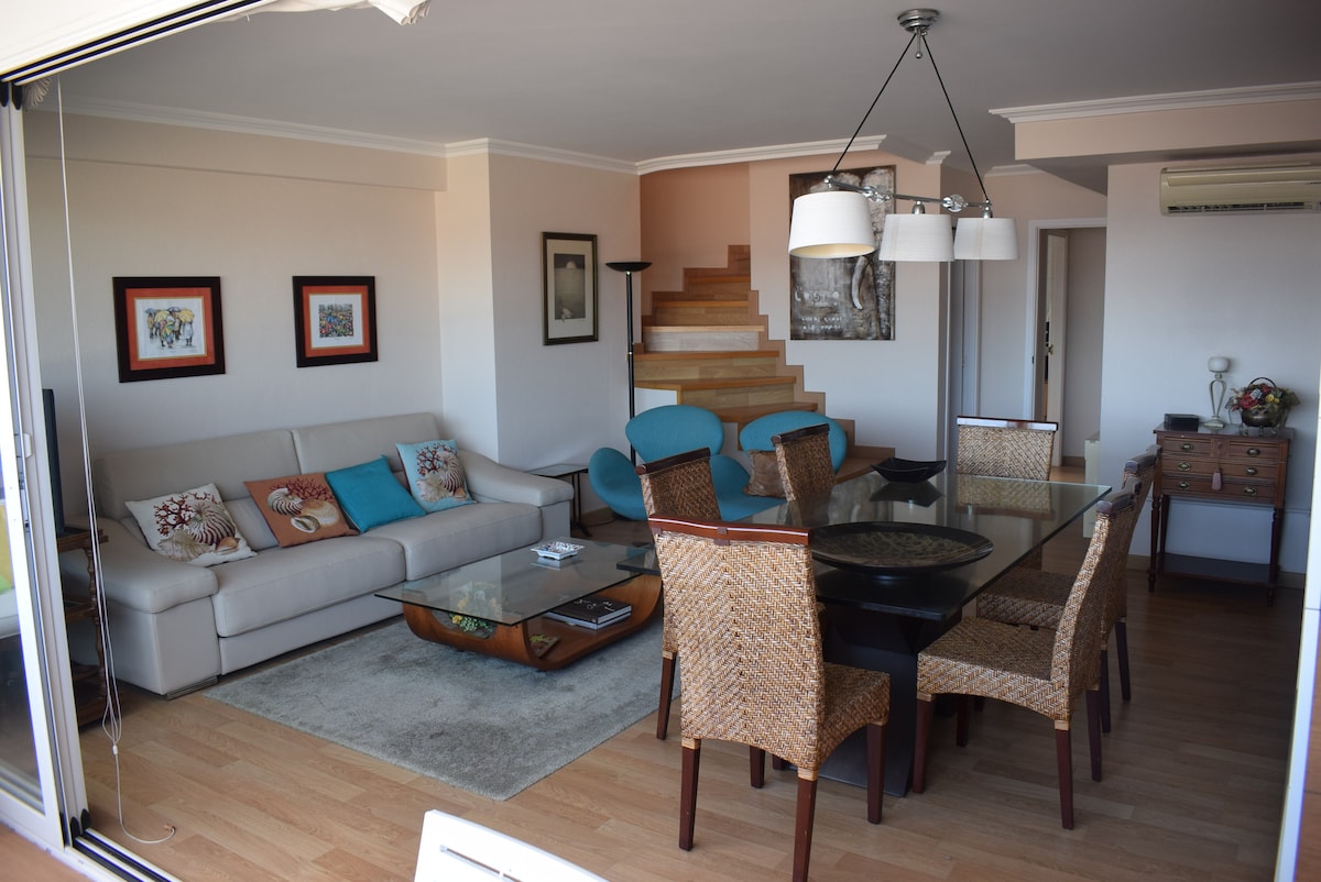 Uživajte u luksuznom doživljaju u ovom centralnom smeštaju. 50 metara od plaže i centralnog parka Panadeira u Sanksenu (sa terenom sa vratarima,zip lineom...) sa zadivljujućim pogledom. Sa garažnim prostorom i terasom. Novouređen. Doručak je uključen. Mašina za sudove, mašina za veš, fen za kosu, slatki ukus, sve što vam je potrebno za praznike. Mirno i udobno pored marine.