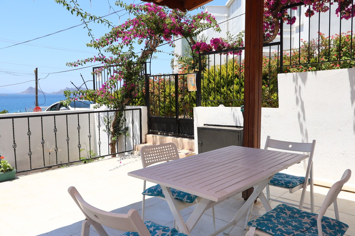 Divna bašta, velika terasa i 2 velika balkona. Bez buke, osim pjevanja ptica. Nedavno renoviran, veoma prostran i potpuno opremljen. (Vila za dvoje, zajednička bašta) Vrlo blizu plaža Akyarlar i Karaincir (400/ 600m, 5/ 8 minuta hoda do svake od njih). Prikladno za bebe i djecu. (Dostupna su sigurnosna vrata na stepenicama, kolevka i stolica za hranjenje za djecu). Kućni ljubimci su dobrodošli! Dostupno nedeljno/mesečno Zabavite se sa cijelom porodicom ili prijateljima u ovom mirnom smještaju.