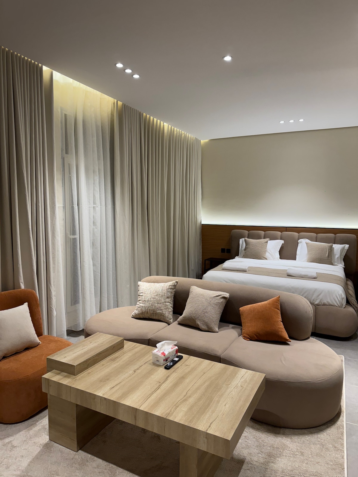 Linda Suites offers modern, hotel-style apartments in AlUla’s Azizia district. With high-quality finishes, essential facilities, and a prime location near Body Masters and other key services, it is the ideal choice for comfortable long-term living. Arabic أجنحة ليندا تقدم شققًا فندقية عصرية بحي العزيزية في العلا. بتشطيبات عالية ومرافق أساسية وموقع مميز بجوار بودي ماستر والخدمات الرئيسية، فهي الخيار المثالي للسكن المريح طويل الأمد.