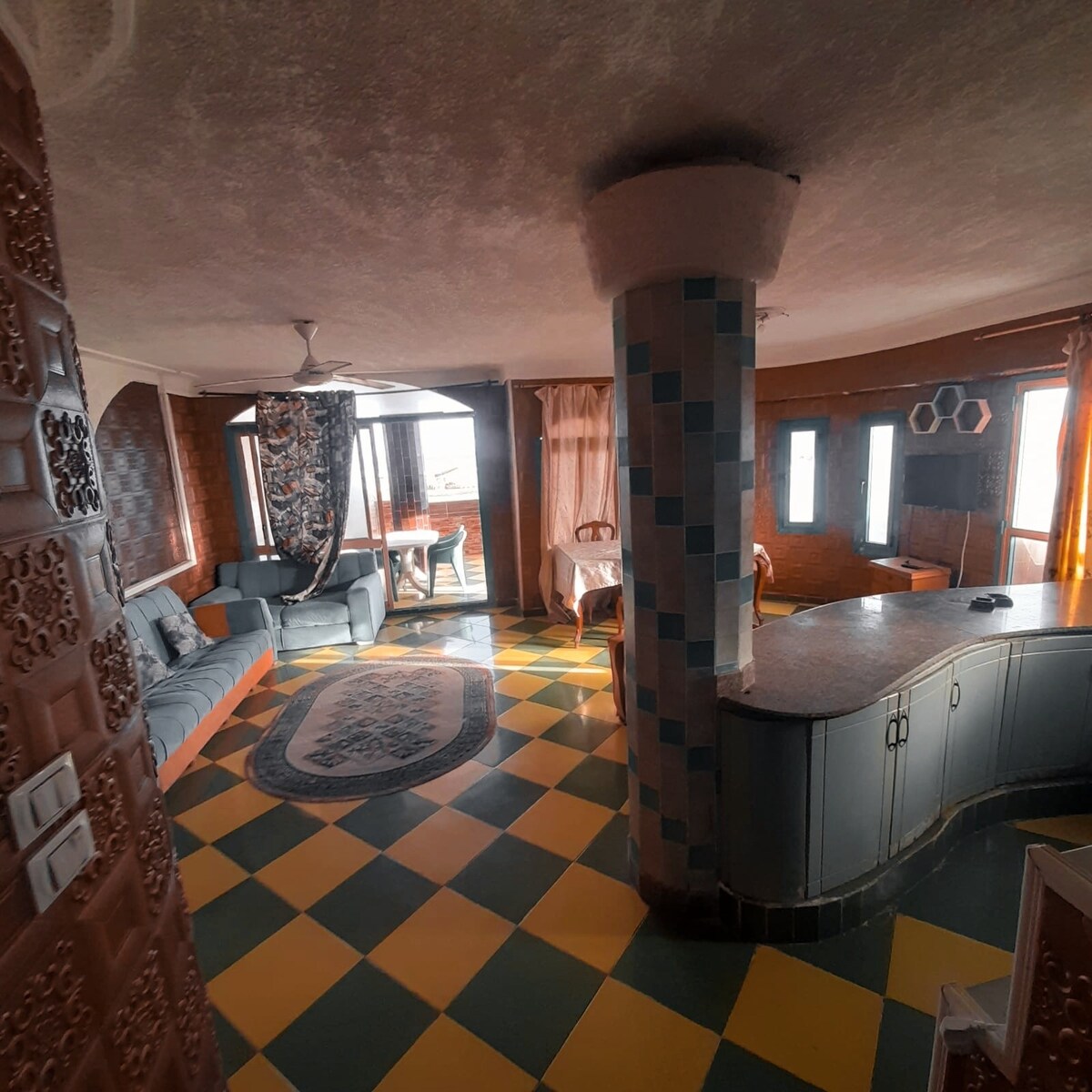 Mirna garsonjera na obali u Bjankiju sa privatnim pristupom plaži i pogledom na more sa krovne terase. Udoban, elegantan i potpuno opremljen prostor sa klimatizovanom spavaćom sobom, prostorom za sjedenje i balkonom za miran boravak. Idealno za digitalne nomade, parove i samostalne putnike. Nalazi se na oko 15 kilometara (25 minuta Uberom) od centra Aleksandrije i nudi savršenu ravnotežu između mira uz more i pristupa gradu.