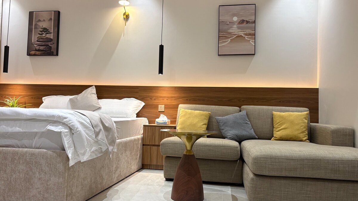 Udoban i tih studio apartman sa brzim samostalnim dolaskom; sa glavnim krevetom i kaučem/dodatnim krevetom; TV-om sa Wi-Fi mrežom i kupatilom; povoljno smješten u blizini svih usluga, kafića i restorana; i 30 minuta od aerodroma Princ Najef.