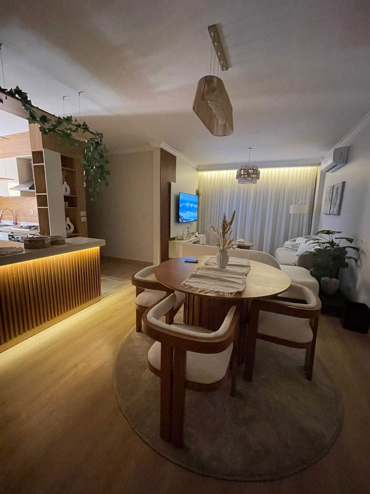 Dobro došli u Kemetland! Doživite modernu udobnost i mir u ovom novouređenom dvosobnom stanu s pogledom na mirnu baštu u Madinaty B1. Dizajniran sa mekim tonovima, elegantnim osvjetljenjem i detaljima u hotelskom stilu, ovaj smještaj spaja toplinu i sofisticiranost — savršen za porodice, parove ili poslovne putnike.