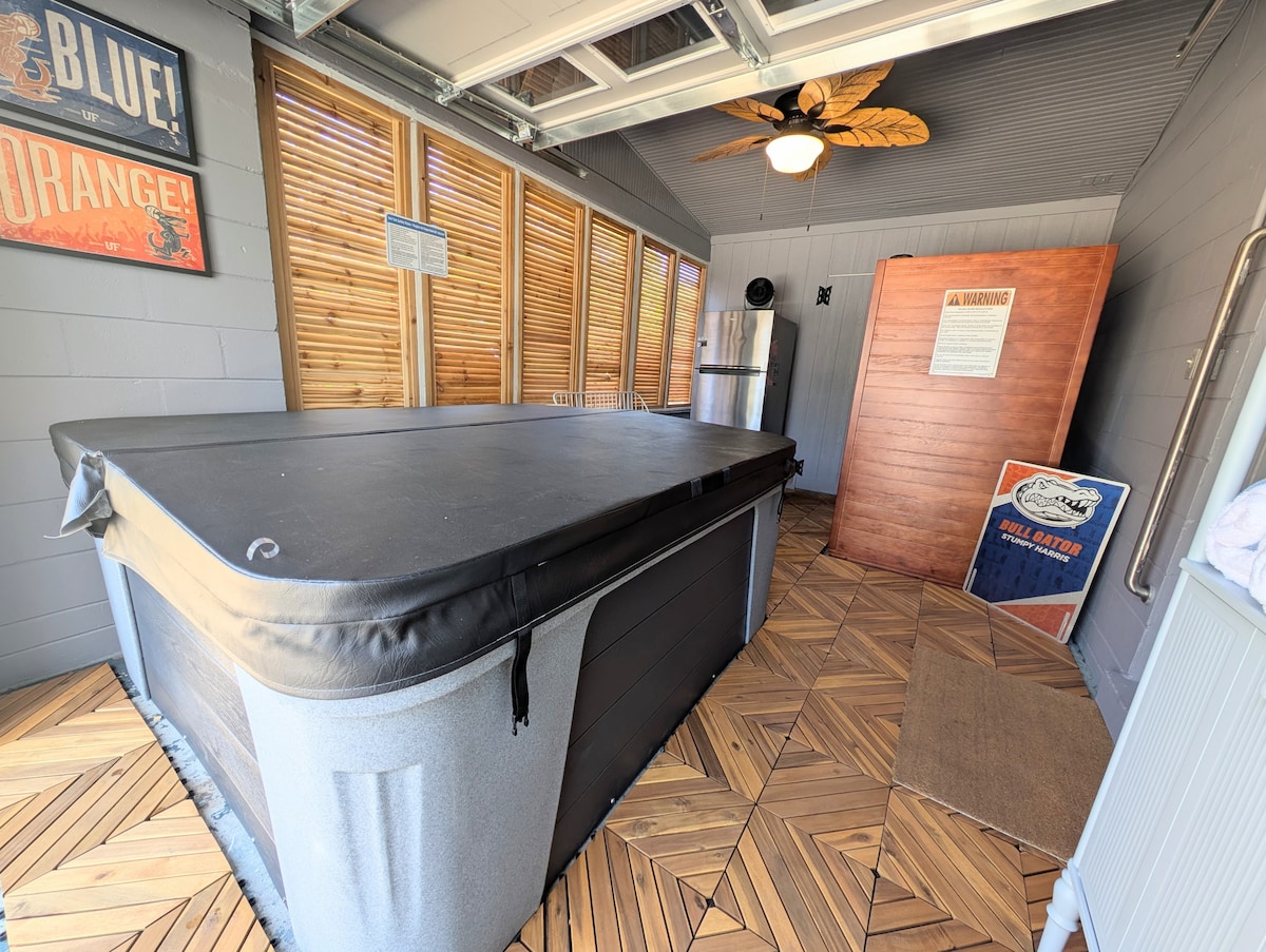 Hot tub & Sauna in a renovated MCM home near UF