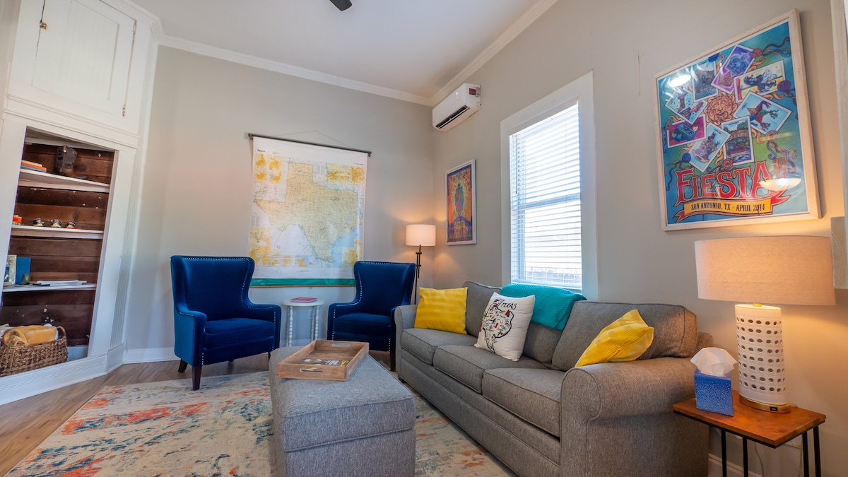 Otkrijte Southtown Carriage House, dvokrevetnu/dvokrevetnu kuću na spratu u živopisnom južnom dijelu San Antonija! Samo nekoliko koraka od šetališta Riverwalk, Alamo i vrhunskih restorana i barova kao što su Rosario's, Friendly Spot i Bliss. „Idealan je za dva para” i vojne porodice koje slave maturu. Uživajte u „udobnom i besprekornom” prostoru, luksuznim dušecima, Wi-Fi mreži i opskrbljenoj kuhinji. „100% preporučujem!” oduševljava gosta. Mirno, moderno i prikladno za pješačenje - vaš savršen odmor u San Antoniju! Dozvola: STR-25-13400957
