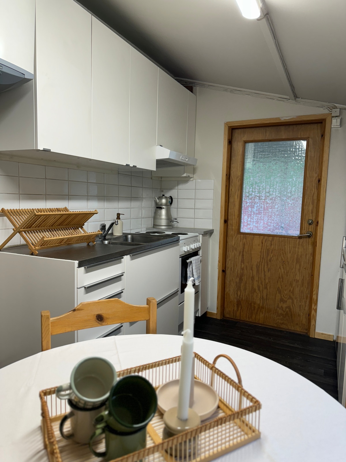 Mala kuća sa velikim potencijalom, velikim spoljnim prostorima, dve terase i velikim travnjakom, pristupom samostojećoj sauni na drva, sopstvenim ribolovnim vodama i brodom. Dostupan je za roštilj (uključujući sopstveni ugalj), kao i plinski roštilj Tu je i veća kuća na farmi Na istoj adresi, zgrada farme, sauna i roštilji se dijele između kuća. Bicikli su dostupni za 3 osobe, a odnosi se na dječije bicikle. Zatražite dostupnost. Smještaji na brodu dostupni u odmaralištu traže dostupnost