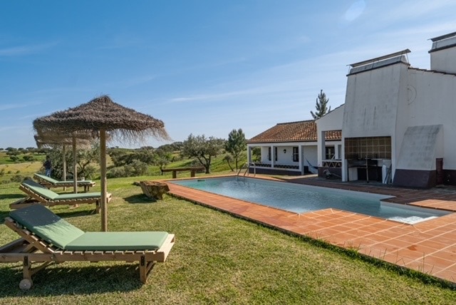 Alandroal nature and pool retreat, encontra-se rodeada por campos, oliveiras e sobreiros, oferecendo o cenário perfeito para descansar, respirar ar puro e desfrutar do ritmo calmo da vida alentejana. Deixe-se levar pela beleza das paisagens envolventes, enquanto dá um mergulho na piscina ou passeia à beira rio. Ideal para famílias volumosas, com crianças ou grupos de amigos que queiram desfrutar de um refúgio no campo.