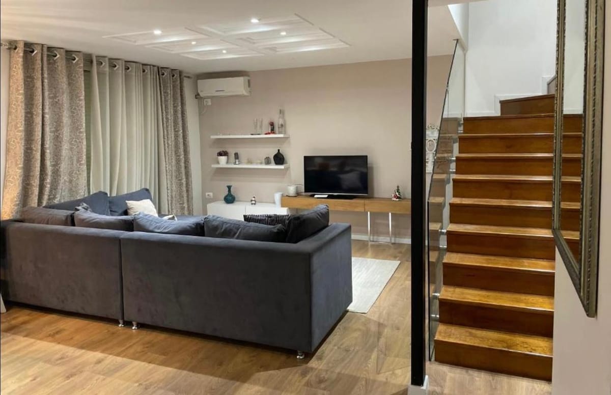 Stan je nedavno renoviran. Veoma je moderan i funkcionalan. To je dvospratni stan sa udobnom spavaćom sobom i kupatilom na spratu, televizorom i dnevnim boravkom u prizemlju. Stan se nalazi na samo 200 metara od svake atrakcije koje nudi Tirana. **Aerodromski autobus je udaljen oko 5 minuta hoda**. **imamo i iznajmljene automobile ako planirate da putujete automobilom dok ste u Albaniji**