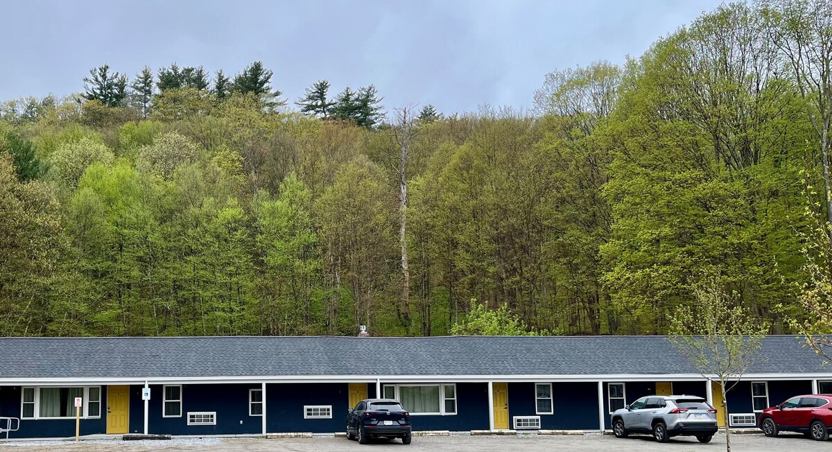 Savršen za odmor s porodicom ili prijateljima, ovaj objekat ima dva luksuzna bračna kreveta na vrhu jastuka, vrhunsku posteljinu, trpezarijski sto i stolice za rad ili jelo, blistavo čisto kupatilo s tušem i odvojenim umivaonikom/umivaonikom, Roku Smart TV i pojedinačno kontrolisanu klima-uređaj i grijanje. Mirno, udobno i sa punim pristupom spoljnim trpezarijskim stolovima i stolicama Adirondack za opuštanje ili uživanje u jutarnjoj kafi dok slušate pjev ptica. Samo 1 milju do Ski Butternut-a.