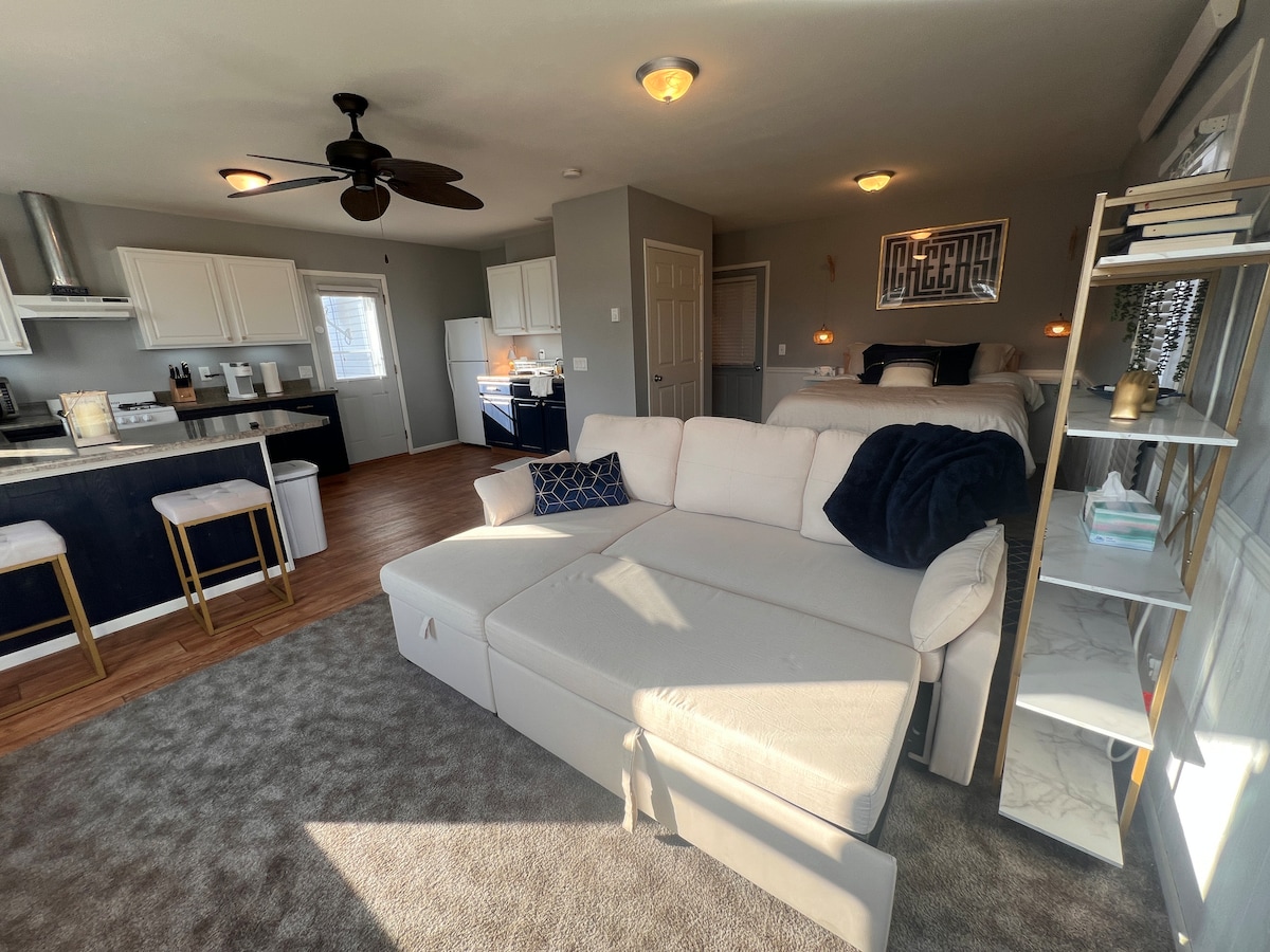 Doživite život u minijaturnoj kući. Sve što vam treba u otvorenom prostoru za boravak od 30 kvadratnih metara sa dodatnom spavaćom sobom u potkrovlju. Krevet u prizemlju je bračni krevet. Kuća se nalazi u centru Algone, a restorani, pozorište, pošta i parkovi su na pešačkoj udaljenosti.
