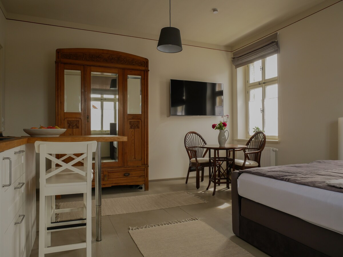 U ovom stanu ćete naći sve što je jednoj osobi potrebno za nekoliko udobnih dana i noći (ili čak duže). U glavnoj sobi nalazi se 1,40 m širok krevet, garderober, potpuno opremljena moderna čajna kuhinja, sedište i pametni TV, uklj. Netflix. Malo kupatilo ima skoro tuš-kabinu, kao i WC šolju i umivaonik. Mašina za pranje veša se može koristiti u podrumu uz konsultacije. Besplatan brzi Wi-Fi je dostupan.
