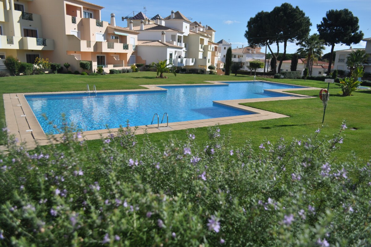 Prekrasan i opuštajući stan s pogledom na baštu u privatnom kondominijumu. Potpuno opremljen, 65" SmartTV, kablovska TV, Wi-Fi, spoljni bazen, teniski teren i privatni parking. 5 minuta hoda do plaže ili do ulice Oura. 15-20 minuta hoda od plaže do starog centra Albufeire.