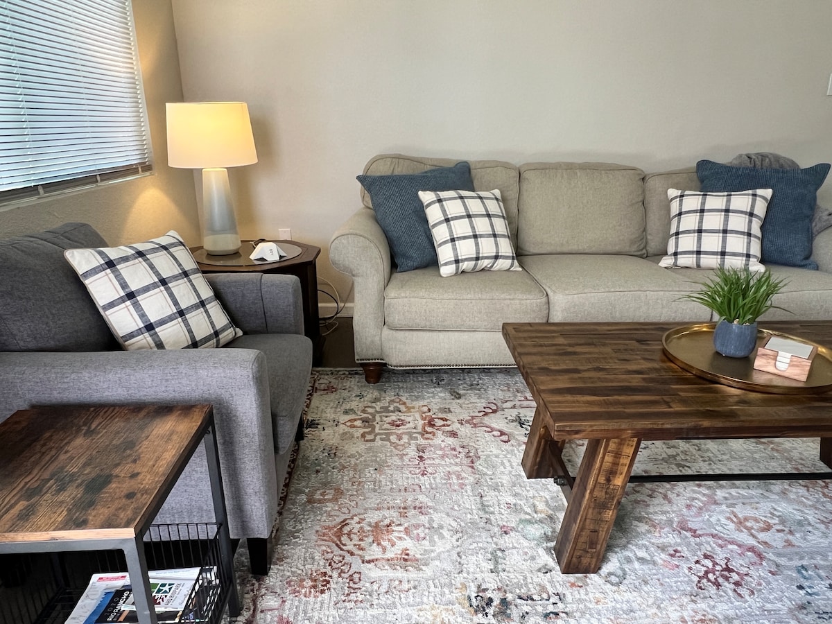 Moderna kuća s 2 spavaće sobe u Rio Ranču. Sve je preuređeno. Dvije spavaće sobe s bračnim krevetima i prostor za nepušače. Mala treća spavaća soba koju čuvam kao ormar vlasnika. U blizini Albukerkija, u blizini Petroglyphs, Sandia Mountain Tramway, i oko sat vremena do Santa Fea. Iako je ceo dom „na jednom nivou“, postoje dva koraka do potopljene dnevne sobe. Besplatna utičnica za punjenje električnih vozila od 50 ampera L2 (nema 14-50), zato ponesite sopstveni kabl/adapter za punjenje. (Ako zaboravite, javite mi.)