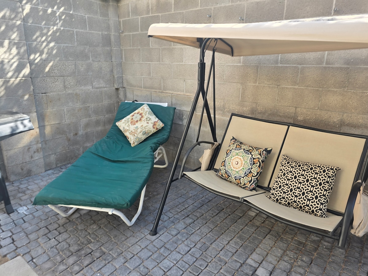Mirni stan na drugom spratu ušuškan na dugom privatnom prilazu. 5 minuta do aerodroma, 2 minuta do KAFB-a, pored VA! Ovaj svijetli i prozračni smještaj ima 2 spavaće sobe, kupatilo, dnevnu sobu, prostor za pranje veša i dobro opremljenu kuhinju. Ostanite povezani sa Wi-Fi mrežom od 80 Mbps i pametnim televizorima za strimovanje. Opustite se u otvorenim dnevnim boravcima ili u dvorištu sa baštenskim namještajem, roštiljem na ugalj i navlakom za hladovinu. Besplatan rezervisani parking i samostalna prijava s pametnom bravom.