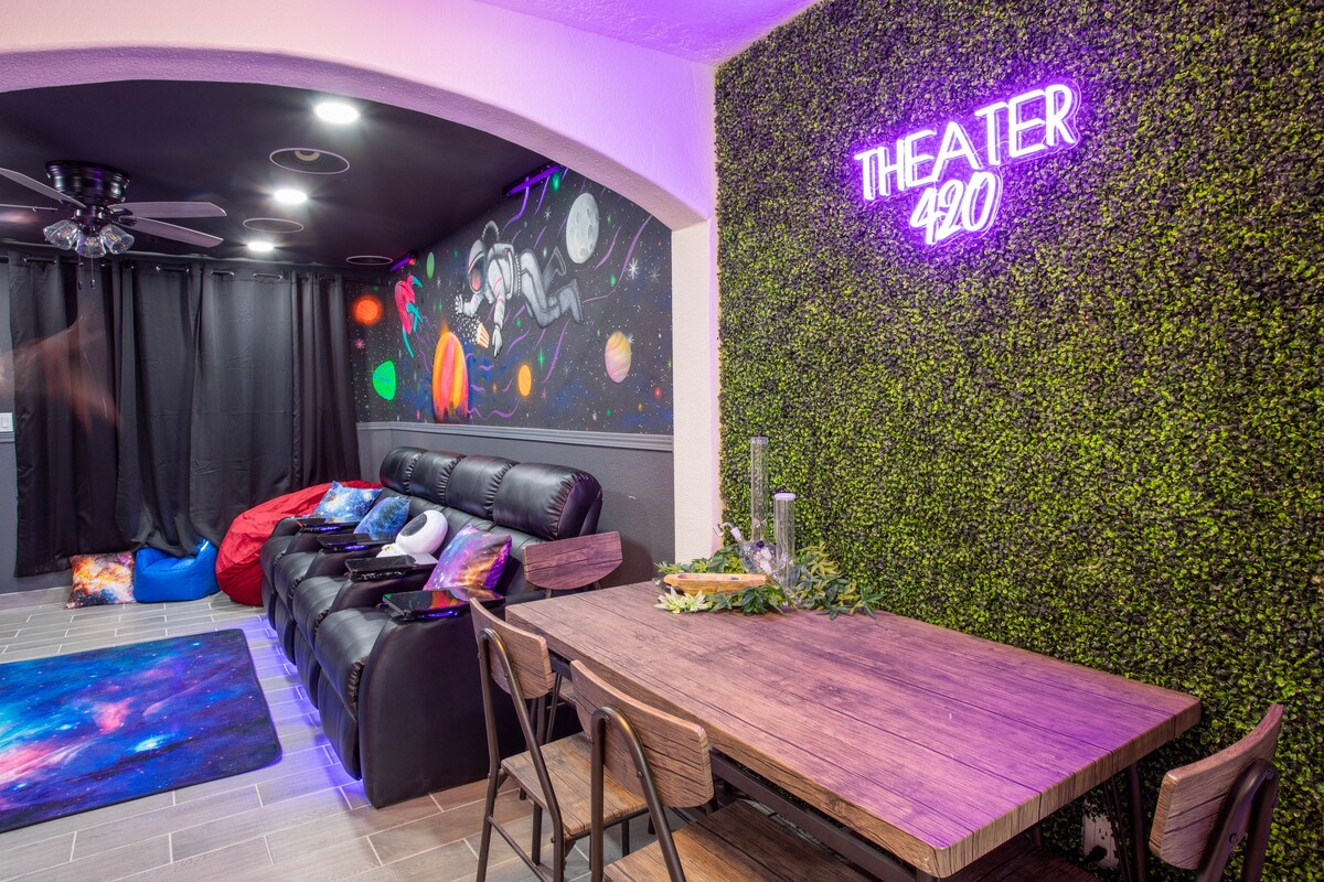 ✅Dobro došli u pozorište 420🍿🎥 ✨ Možete da pušite i koristite sve proizvode od marihuane koje želite dok uživate u doživljaju bioskopa sa naslonjačima i sistemom surround zvuka!🔊 🚭nema duvanskih proizvoda Obezbjeđujemo pribor za pušenje koji se čiste i dezinfikuju nakon svakog gosta. ⭐Balon Fiesta Park➡15 minuta vožnje ⭐Univerzitet u Novom Meksiku➡5 minuta vožnje ⭐Aerodrom➡ 5 minuta vožnje ⭐Centar Albukerkija ➡7 minuta vožnje Tržnica ⭐Rail Yard➡ 2 min vožnje