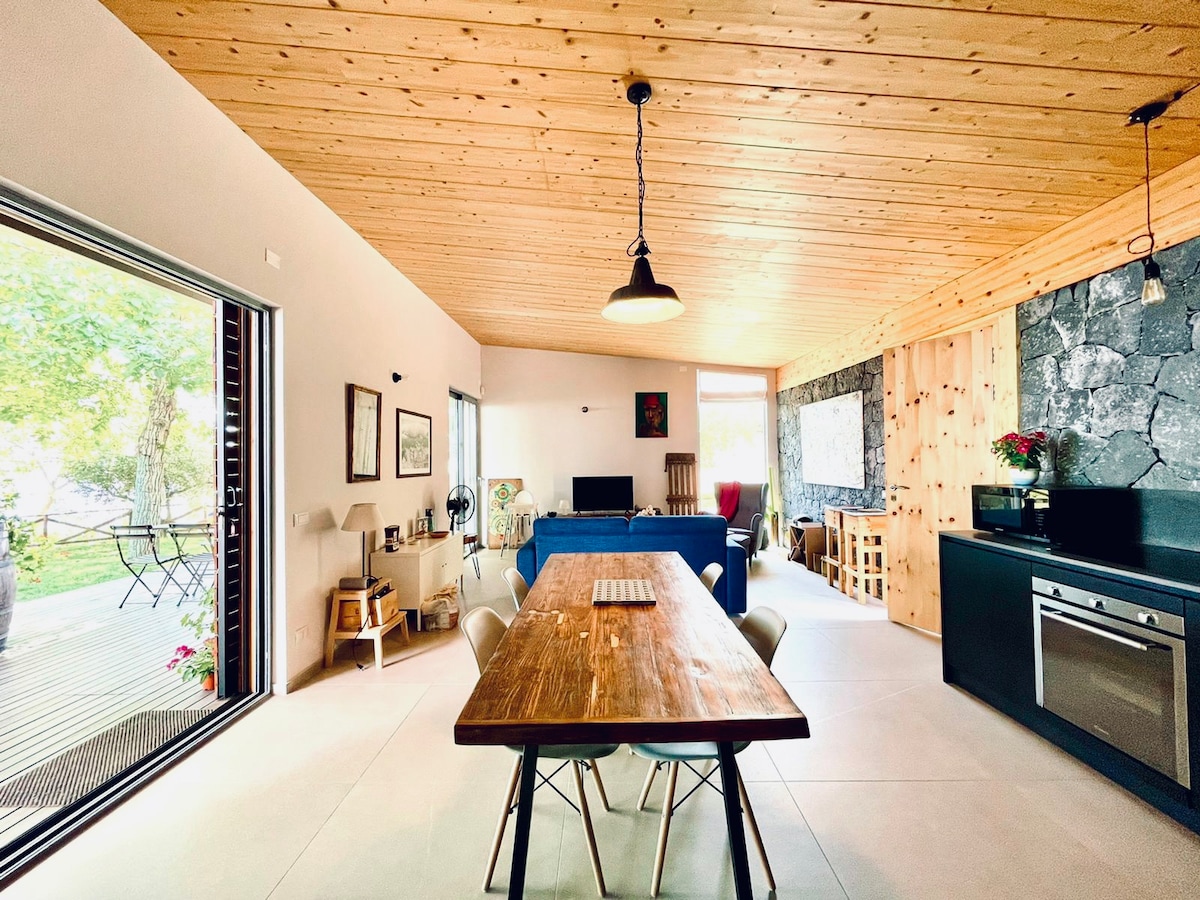 Ekskluzivna vila na Etni, 550 metara nadmorske visine, nalazi se u Puntalazzo-Mascali. Udaljen je 45 km od aerodroma Katanija i 35 km od Taormine. Velike zelene površine sa prostorom za roštilj, bazenom i pogledom na jonsku obalu. Unutrašnjost uključuje veliku spavaću sobu sa kuhinjom i aparatima, kupatilo, klima uređaj i Wi-Fi vezu.