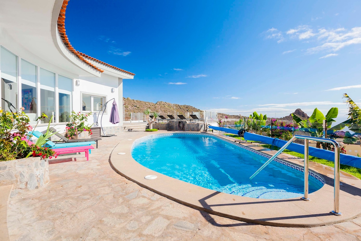 Dom u kanarskom stilu sa pogledom na more, terasom i bazenom