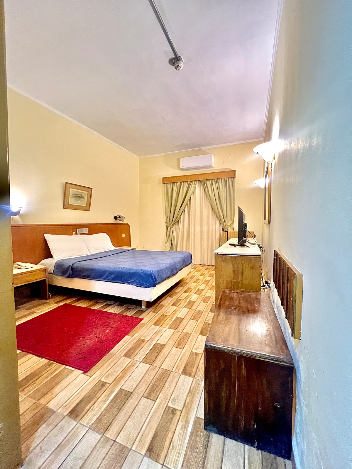 Air-conditioned hotel rooms located on a lively, vibrant street, featuring a flat-screen TV, high-speed Wi-Fi, and a relaxing outdoor seating area — the perfect blend of comfort, convenience, and atmosphere for an unforgettable stay..