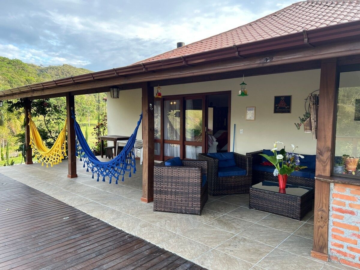 PROMOCIJA: jedno besplatno noćenje! Rezervišite i dobićete 1 dodatno noćenje! Važi cijelo ljeto! Morate da unesete broj gostiju prilikom rezervacije! Kuća ima 78 m2 prostora integrisanog u Atlantsku šumu u Sera Catarinenseu. Rijeka sa svojim cachoeirinhas, raznolikost ptica i tišina pozivaju na tišinu. Sljedeća je Cachoeira do Rio Lessa. Na hladnoći, šporet na drva čini mjesto prijatnijim. U ovom posebnom okruženju uživaćete u naših 2000 knjiga. Dobro došli!