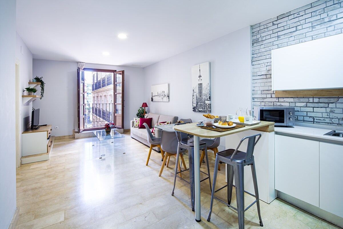 Potpuno renoviran 2025. godine, ovaj stan čuva istoriju stogodišnje zgrade u kojoj se nalazi. Renoviranje arhitektonskog studija GÁLVEZ+DÍAZ uspjelo je da spasi originalne hidraulične trotoare skrivene ispod dva nivoa pločica, obnovi balkonska vrata i modernistički pogled na fasadu i cijeni čvrstu ciglu prvobitnih zidova zgrade i njenu drvenu gredicu.