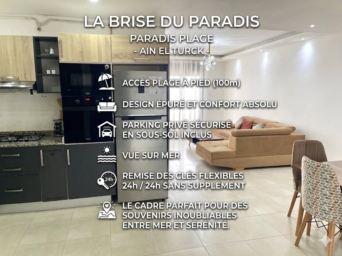 Luxe primorje — porodični odmor, vrlo udobna verzija. Uživajte u izuzetnom boravku u Alžiru sa svojim najmilijima, u našem otmjenom stanu uz more. U Luxe primorju, svaki detalj je osmišljen tako da kombinuje udobnost i prefinjenost porodice. Uživajte u mirnom, bezbjednom i toplom okruženju, blizu plaža i najboljih mjesta u Alžiru. Luxe Littoral, vaše najljepše uspomene počinju ovdje. Ain Taja * Porodična knjižica je obavezna za parove*