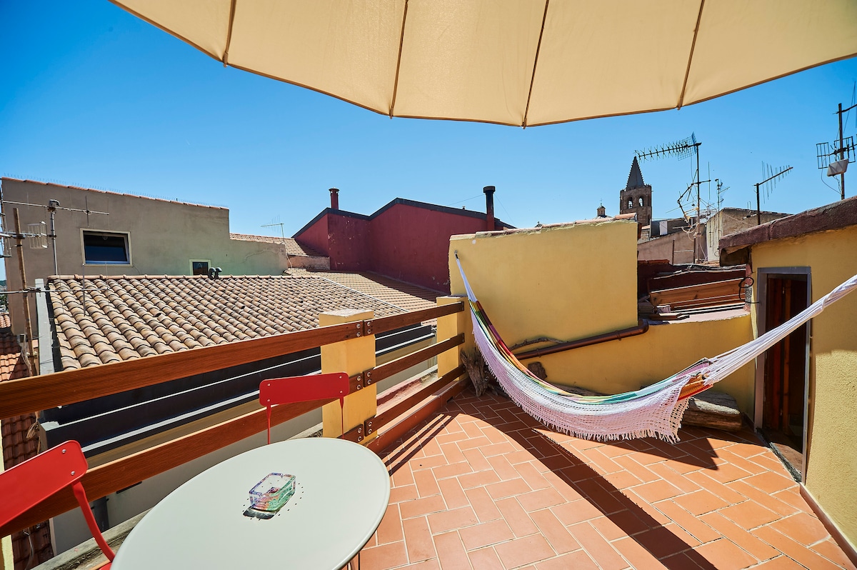 Nedavno renoviran stan u centru Alghero Vieja. Na terasi možete uživati u privatnosti i miru, a zašto ne, ako ne, ne težite više od 100 kilograma, mazite se na našoj brazilskoj visećoj ležaljci i večerajte sa pogledom koji nikada nećete zaboraviti. Otvorena kuhinja u dnevnom boravku opremljena je svim udobnostima: mašinom za pranje sudova, rernom, indukcionom pločom za kuvanje i aparatom za kafu sa mahunama.